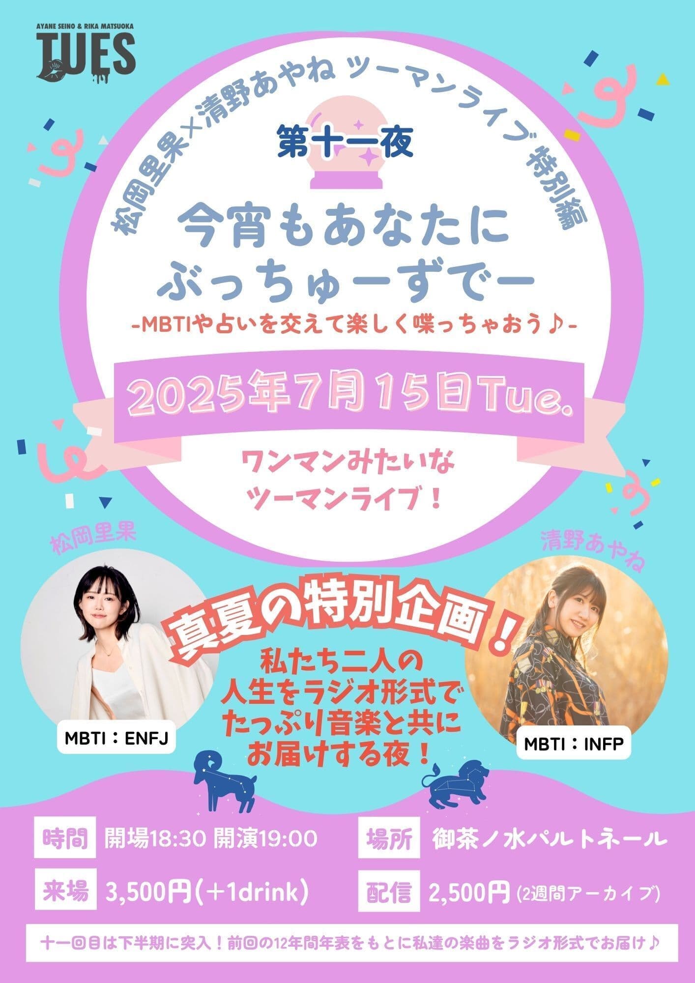 【前売】4,500円(+1drink)/当日+500円